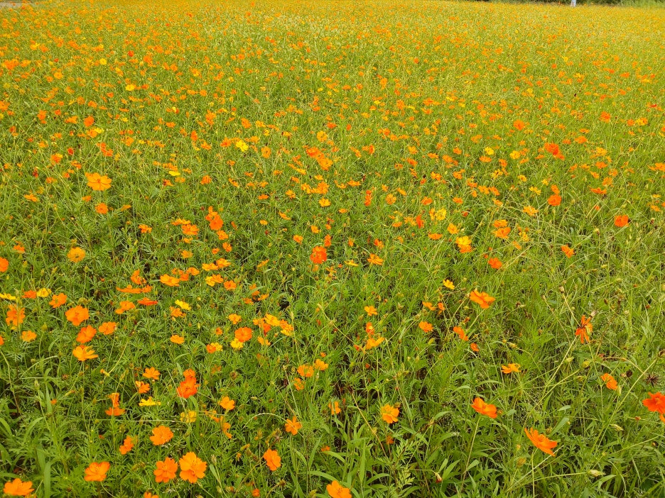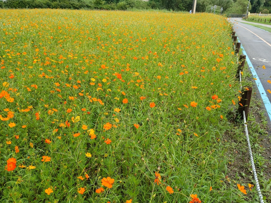 미사대교 밑 꽃밭은 보이기 위해 씨를 뿌려 자란 꽃이다. 가을 국화인 모양인데, 구리 한강 시민공원에도 같은 종류의 꽃을 심었다. 모두 가을의 운치를 물씬 느끼게 만들어 준다. 두 곳 모두 코스모스도 심었는데 이제 서서히 꽃을 피우고 있다.