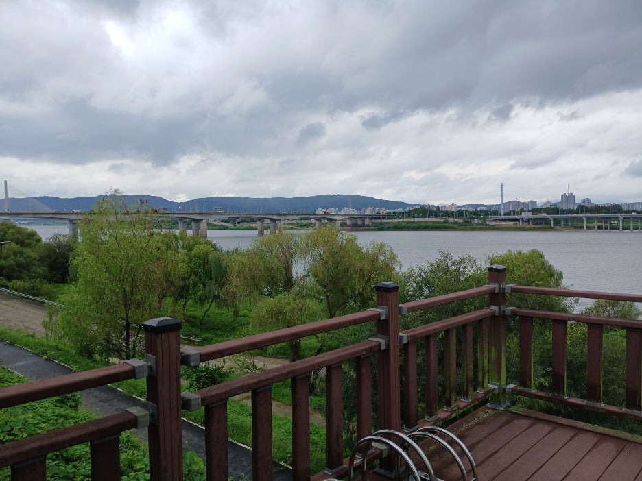 하남 방향으로 가는 길에 있는 한강변 전망대다. 나는 사람이 많은 곳에는 가지 않는 성격인데, 평소에는 이곳에 사람들이 많아 한 번도 쉬어가 본 적이 없는 곳이다. 오늘은 날씨가 흐린 날이라 자전거족은 거의 보이지 않았다. 그래서 아무도 없길레 이곳에서 쉬면서 사진 도 몇 장을 찍었다.