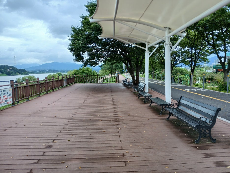45번 국도 옆 자전거 도로에는 화장실이나 편의점이 드물다. 유일한 쉼터인 북한강 전망대가 있지만 화장실도 없고 새로 지은 건물에 가려 전망대 기능도 상실했다.