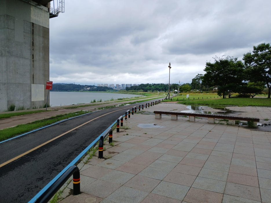 미사대교에서 삼패공원까지는 이런 꽃밭은 물론 잔디밭이 넓게 조성되어 있고 주말이면 사람들이 가족 단위로 나와서 텐트를 치고 강변 풍경을 즐기면서 주말을 보낸다. 분수대는 물론 길게 뻗은 강변 산책로는 가슴을 탁 트이게 만들어 주기에 연인끼리 손을 잡고 걷기도 하고 혼자 산책도 하고 열심히 달리는 사람도 많다.