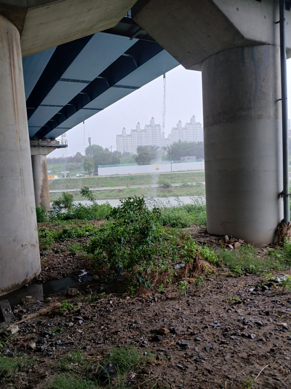 요즘애는 비가 오락가락하는 날이 많다. 국지성 소나기가 갑자기 쏟아지는 경우가 많아 요즘은 휴대폰으로 날씨를 보는 시간이 많아졌다. 왕숙천에는 지나는 다리가 많아 소나기를 피하기에 좋다.