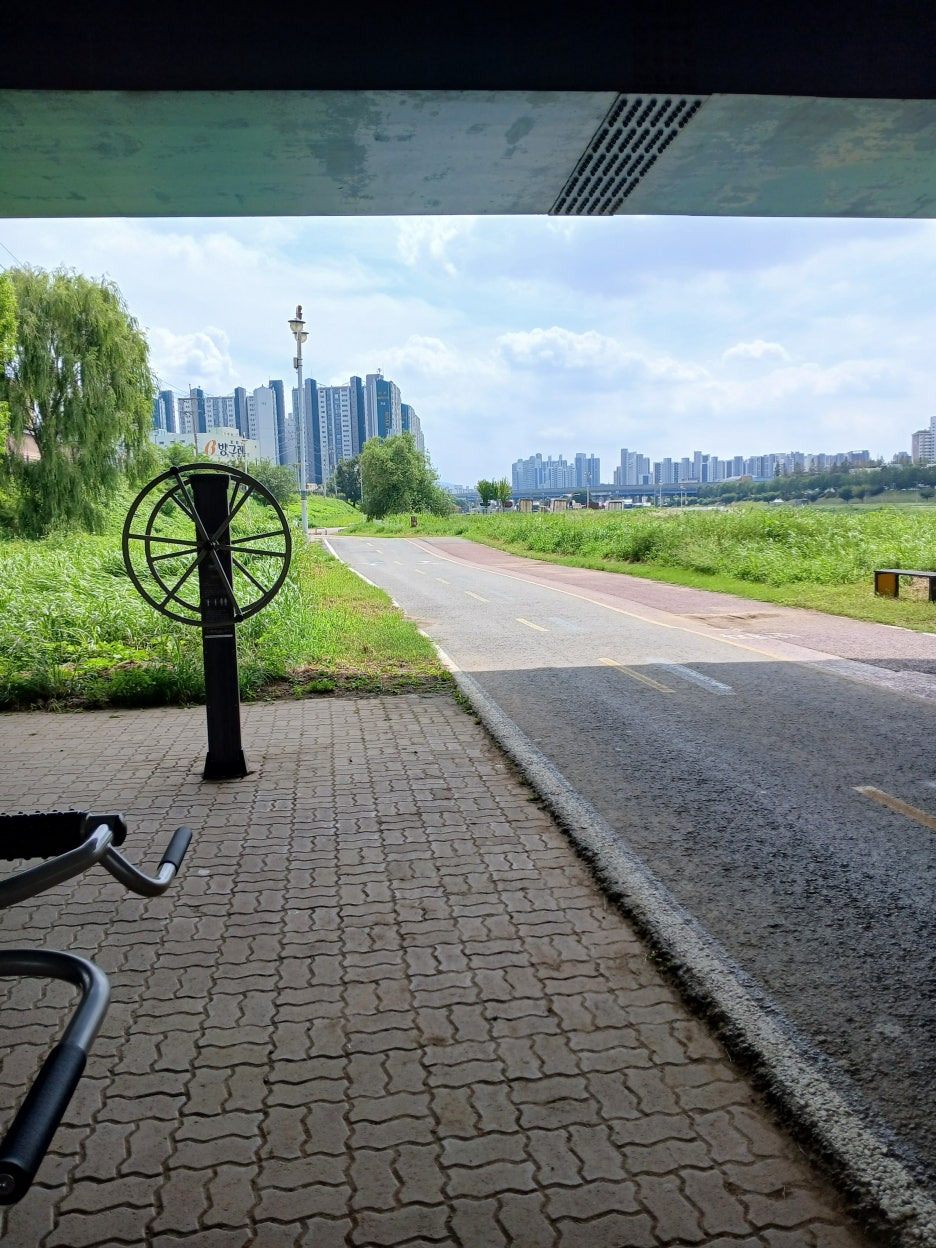 한여름에 깔딱고개를 넘어오면 이곳에서 운동을 하는 이유는, 우선 다리 밑이라 그들이고 바람이 불어 시원하다. 운동을 마치고 자전거 정비와 청소를 한다. 먼지를 털고 닦고 기름칠 한다. 브레이크 패드나 라이닝에 기름이 묻지 않도록 조심해야 한다. 음악을 들으면서 시원한 얼음 음료를 마시며 쉰다. 만약 다른 사람이 있으면 운동만 하고 떠난다.