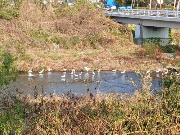 어느날 사능천을 지나가다보니 하천에서 백로들이 무리지어 유희를 즐기며 놀고 있다. 노는 것이 아니라 물고기를 몰아 한쪽으로 모이게 하여 먹이사냥을 하는 것이다. 새머리라고 욕하지마라, 그들도 먹고살기 위해서 최소한의 지능은 갖고 있다는 점이다.