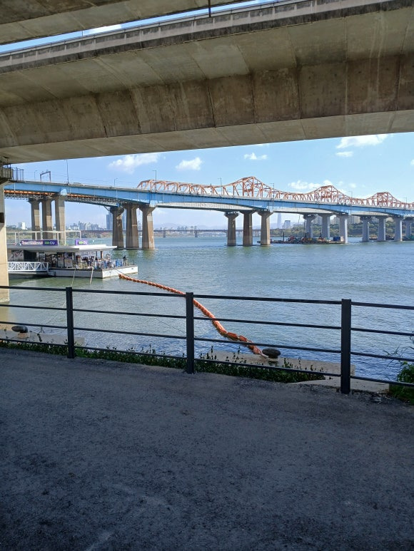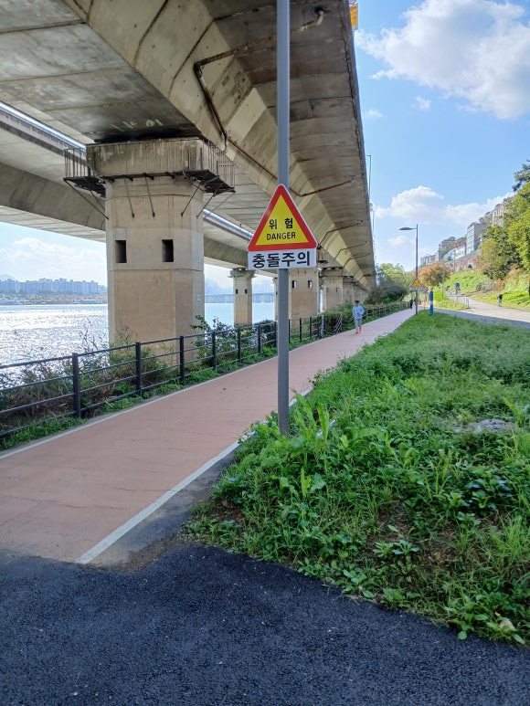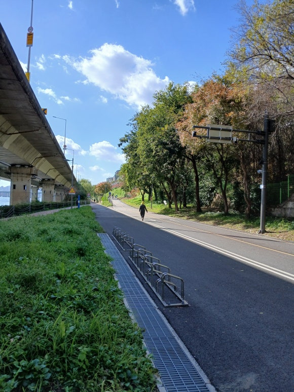 한강변 자전거길과 산책길은 가끼이 사는 주민들의 유일한 놀이터인 샘이다. 운동하는 사람, 산책하는 사람, 달리는 사람, 반려견을 데리고 나와서 산책하는 사람, 밴치에 앉아 조용히 한강을 바라보는 사람, 도시락읋 사와서 같이 즐겁게 먹고 있는 풍경도 자주본다.