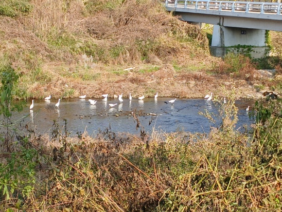 사능천에는 백로들이 무리지어 유희를 즐기며 먹이 사냥에 열심이다. 백로들이 무리지어 있는 것은 물고기를 한쪽으로 몰아 먹이사냥을 하는 것이다.