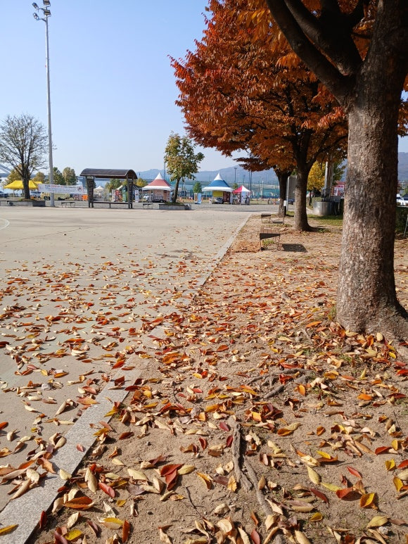 공터에는 낙엽이 떨어져 흩어져 있다. 바람에 휘날리기도 하고 한쪽으로 쌓여 있다. 벤치에 혼자 앉아 멍하니 낙엽을 바라보니 가을을 실감하게 된다. 한해를 열심히 살면서 자신의 임무를 다하고 쓸쓸히 땅으로 돌아가는 낙엽처럼 역사의 흐름 한켠에서 자신의 삶을 열심히 살고 땅으로 돌아가는 인생과 무엇이 다를 것인가.