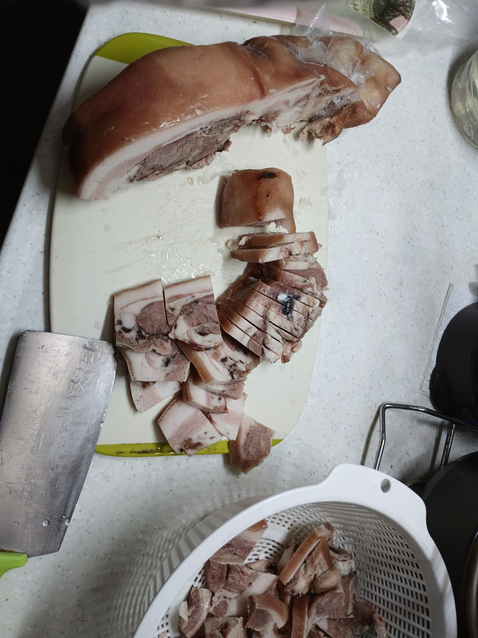추운 겨울날 시골 장터에서 아버님과 같이 먹던 돼지국밥이 생각이 나서 집에서 만들어 보기로 했다. 그리서 인터넷으로 삶은돼지머리 고기 1마리를 구매했다.
