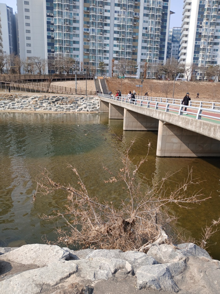 하천에는 봄기운이 올라오고 있는 듯, 양지 쪽 잡초들이 고개를 내밀고 겨울동안 얼었다 녹은 하천물이 졸졸 흐르고 있다. 대지도 태양의 열기를 받아 서서히 녹아내리고
