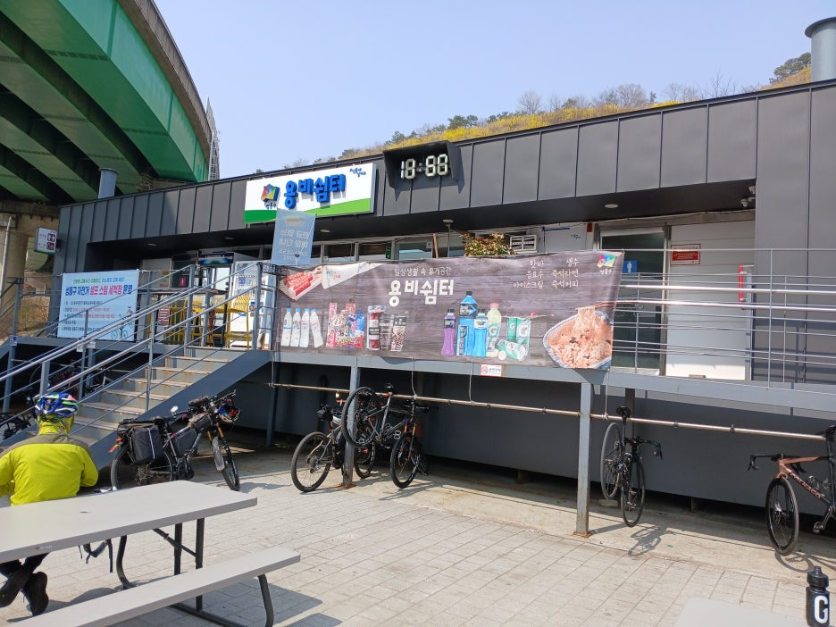 이 편의점은 자전거족들을 포함하여 산책을 하는 이 일대 주민들이 즐겨 찿는 곳이기도 하다. 그래서 이곳은 만남의 장소이기도 하고 휴식의 장소이기도 하여 쉼터 중애서 가장 번잡한 쉼터이다.
